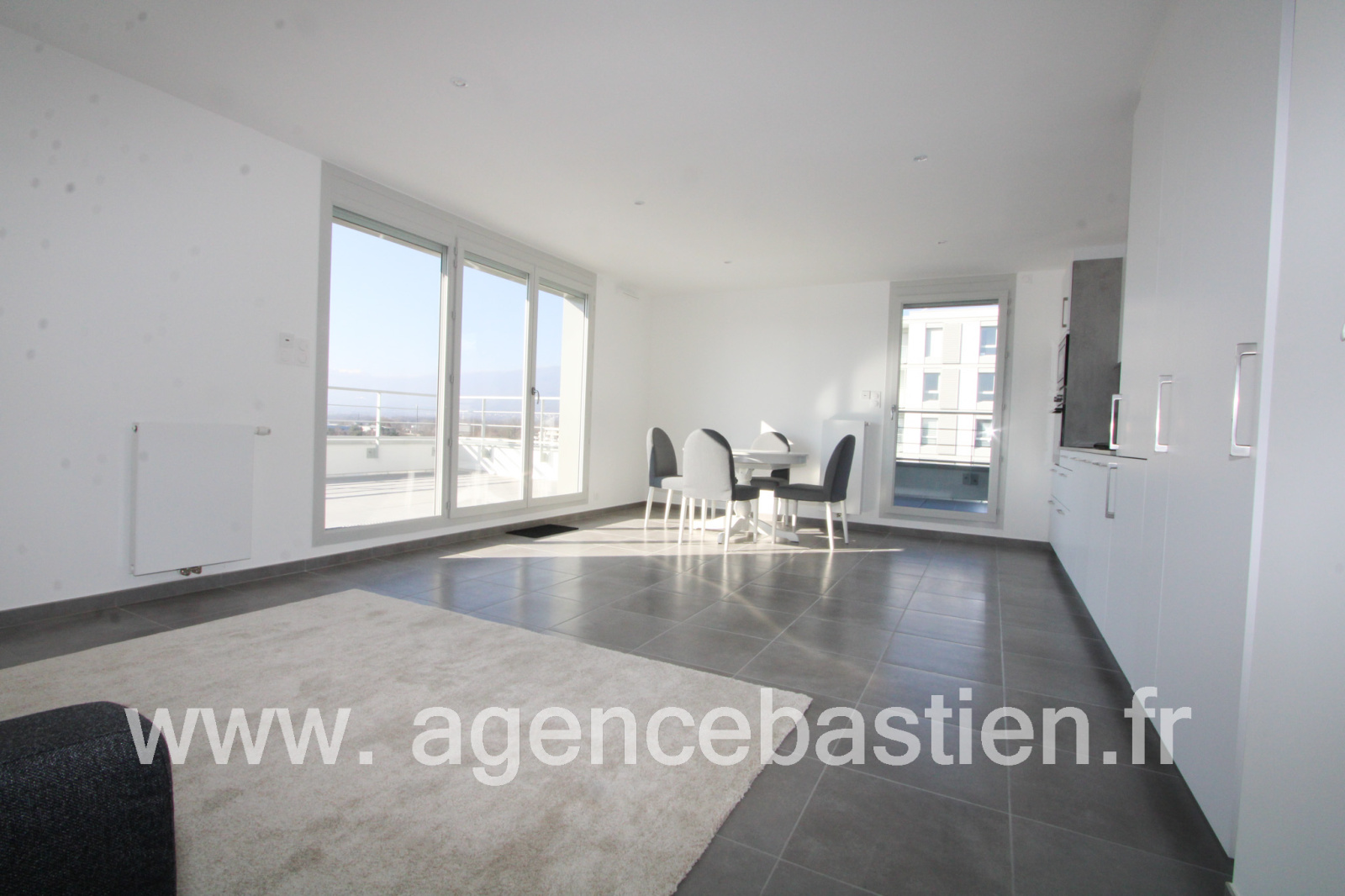Saint-Genis-Pouilly (01630)SAINT GENIS POUILLY - EXCEPTIONNEL Magnifique appartement meublé en dernier étage, secteur Porte de France, à deux pas de la douane du CERN.. Cet appartement de type 4 comprend une grande cuisine entièrement équipée et ouverte sur le séjour, trois chambres dont deux avec placard, une salle de douche et un WC séparé.