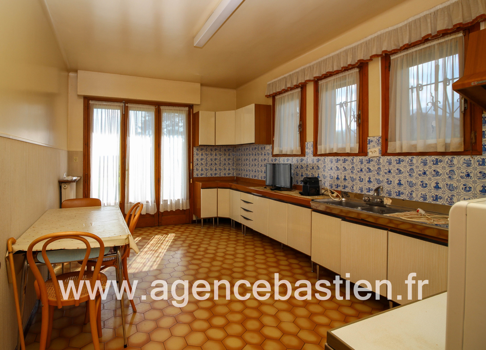 Le rez-de-chaussée de 127.5 m² se compose d'un hall entrée, une vaste cuisine ouvrant sur le jardin, un grand salon/séjour, 3 chambres avec placards, une salle de bain, wc séparé.