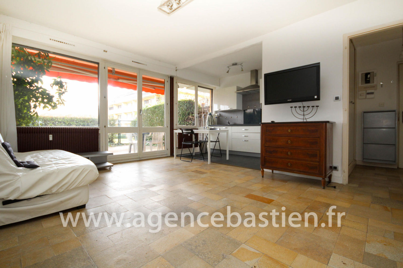 EXCLUSIVITÉ - DIVONNE LES BAINS - Studio de 34 m² en rez de jardin avec spacieuse terrasse. Il se compose d'une entrée avec placard, cuisine équipée sur espace de vie, salle de bains et WC. En annexe une cave. Agence Bastien Divonne-les-Bains. Réf. 6480. Honoraires à la charge du vendeur.
