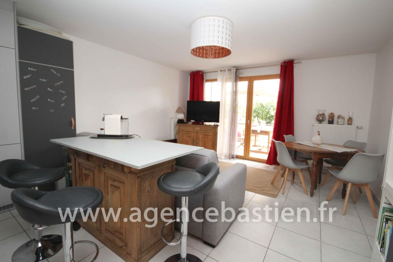 DIVONNE - Rare sur le marché, dans résidence récente en plein centre-ville - Appartement de type 2 en rez de jardin comprenant entrée avec placard, cuisine équipée ouverte sur salon, terrasse de 23 m², chambre avec placard, salle de douches avec WC. Grande place de parking privative en sous-sol. A visiter rapidement. Réf. 6341. Honoraires à la charge du vendeur.