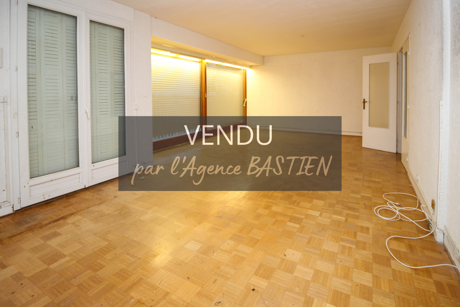 Appartement à rénover comprenant entrée avec placard, cuisine, buanderie, grand salon/séjour avec balcon, deux chambres, salle de bains et WC séparé.