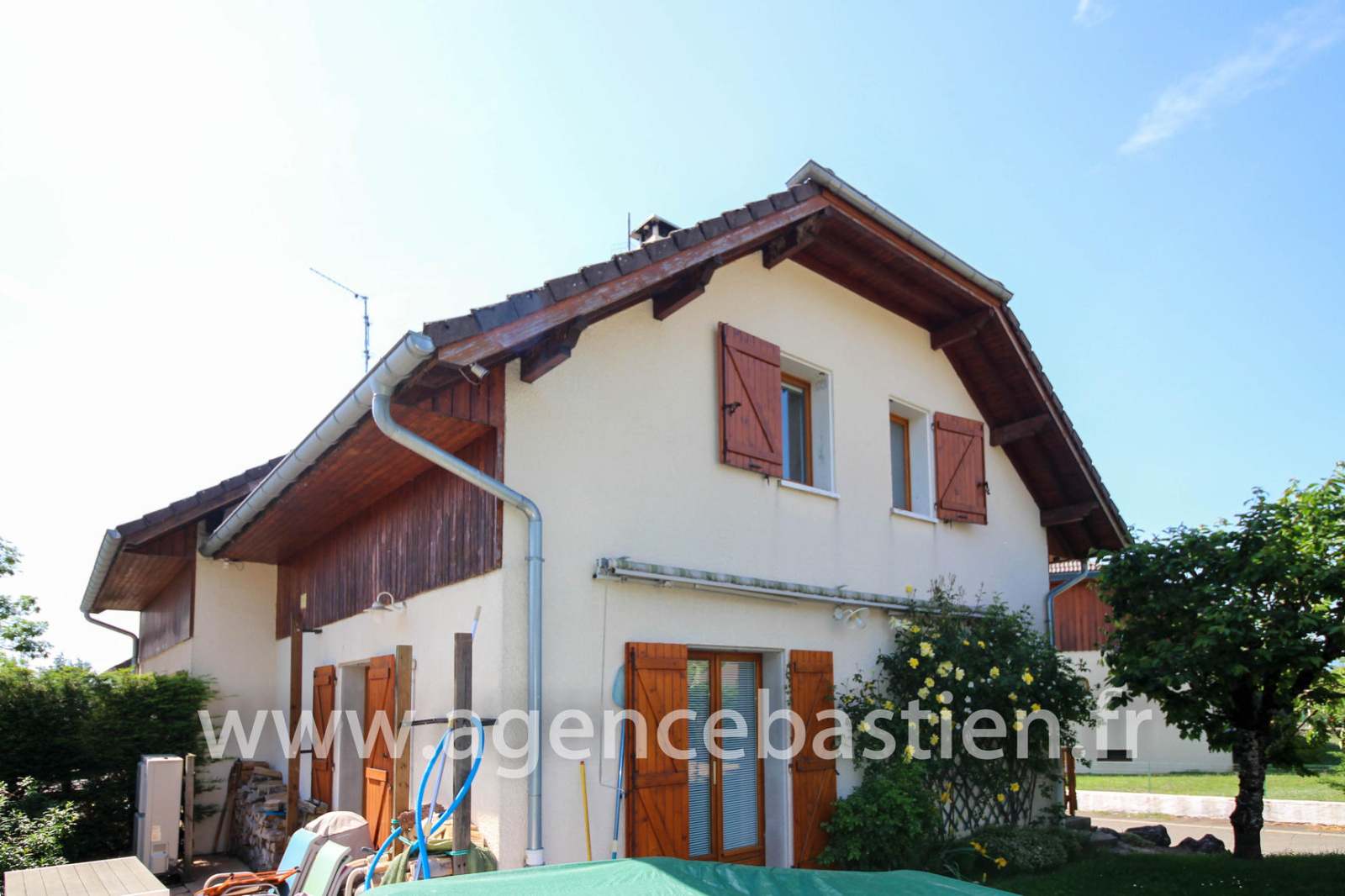 CESSY - Dans quartier résidentiel au calme, proche centre et transports TPG - Maison mitoyenne d'un côté d'environ 100 m² habitables sur un terrain de 205 m² environ. La maison se compose d'une entrée, une cuisine équipée, salon/séjour avec poêle à bois et toilette visiteur. A l'étage, 3 chambres, salle de bains et wc. Sous-sol avec grand garage, une chambre et une salle de douches/wc. Chauffage par pompe à chaleur, panneaux solaires/chauffe-eau et panneaux photovoltaïques. A visiter rapidement. Agence Bastien Divonne-les-Bains. Réf. 6485. Honoraires à la charge du vendeur.